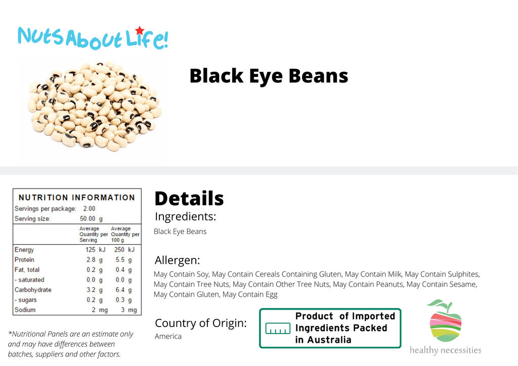Our delicious Black Eye Beans are processed and packed by our Nutty Team, right here in Melbourne, Australia, buy black eye beans today!
